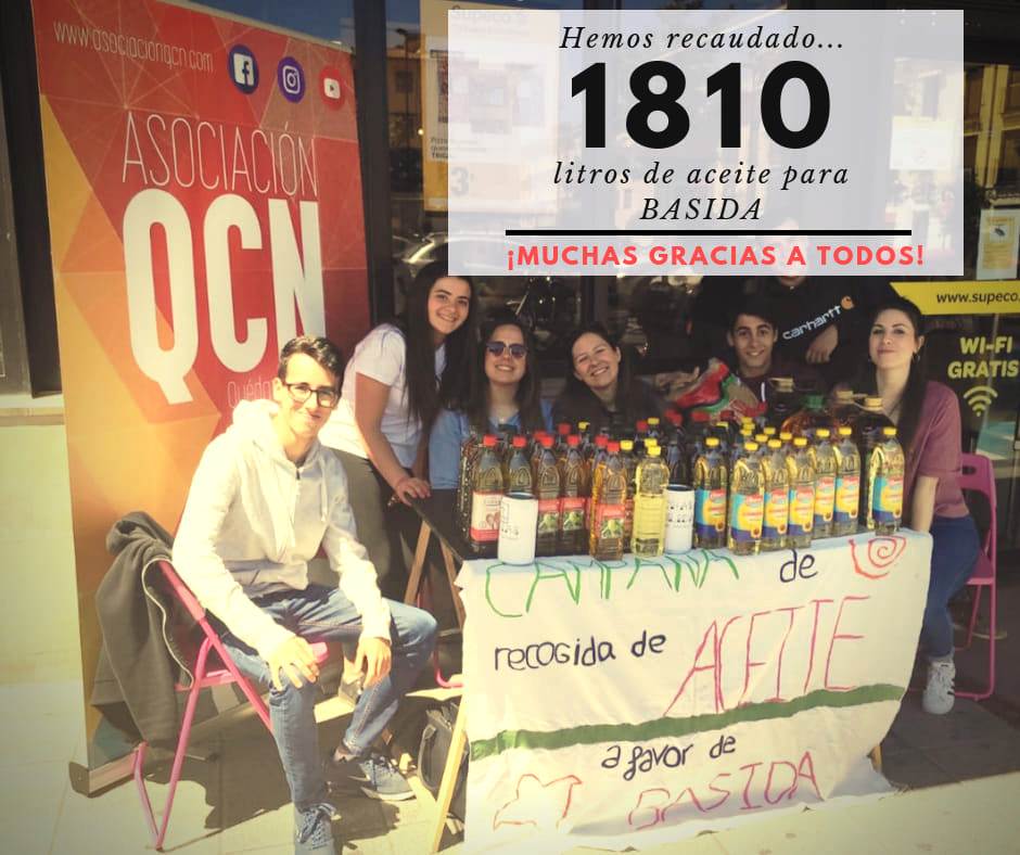 Finalizada la tradicional campaña de recogida de aceite que la Asociación QCN de Aranjuez organiza cada año para colaborar con Basida nos alegra informar que este año se ha batido un nuevo record de litros de aceite recogidos.